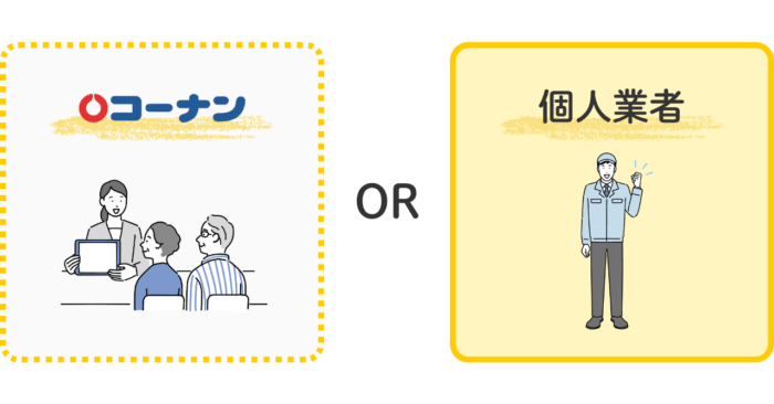 外構リフォームを依頼する場合は、主に「コーナンの店舗窓口(提携施工)」に頼むか、「専門の外構業者・リフォーム会社」に頼むかの二択になります。どちらにもメリット・デメリットがあるため、費用だけでなく段取りのしやすさや保証範囲まで含めて比較することが重要です。