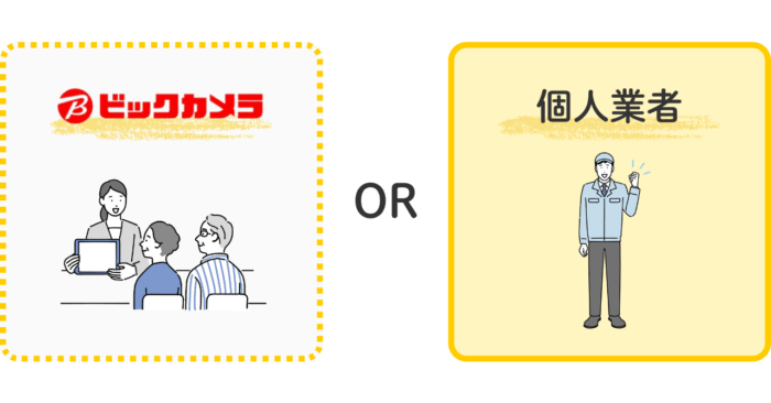 | ビックカメラ(家電量販店系) | 主要メーカー横断で選べる/家電同時購入のセット割・ポイント還元・延長保証をまとめやすい/展示で実機確認しやすい | レイアウト変更や造作が多い案件は追加費用が膨らみやすい/プラン選定に時間がかかることがある |