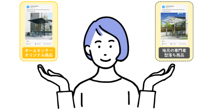 ホームセンターと専門業者では、自転車置き場用サイクルポートの仕上がりやアフターサービスにどんな違いがありますか?