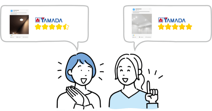 ヤマダ電機のダウンライト交換は、店舗網と提携工事の強みを活かし、器具選定~交換工事までワンストップで依頼できる点が好評です。とくに調光・調色や高演色、防湿仕様、スマート連携などの機能性で満足度が高い一方、「追加オプションで費用が上がりやすい」という声もあります。以下に、実際の利用者を想定したリアルな口コミ例をまとめました。