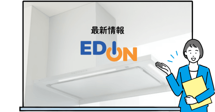 エディオンの店頭や公式チラシに記載されているレンジフードの価格は、あくまでもメーカー希望小売価格(定価)を基準とした表示です。実際に交換工事を依頼する際には、キャンペーン価格やセット割引、会員特典などが適用されるため、定価より安くなるケースが一般的です。