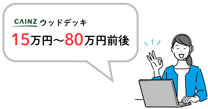 | 天然木(防腐処理)デッキ | 15万〜35万円 | 0〜5万円(地域要件による) | 10万〜35万円 |