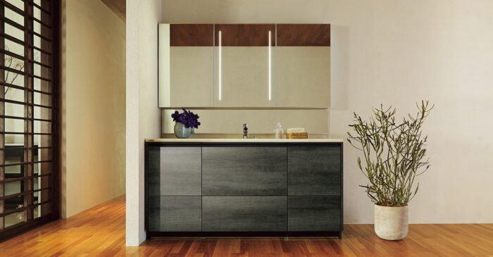 上質な意匠のフラグシップから、造作風アレンジやスタンダードモデルまで幅広くカバー。間口や収納、ボウル形状、ミラー仕様を組み合わせて最適な一台を選べます。