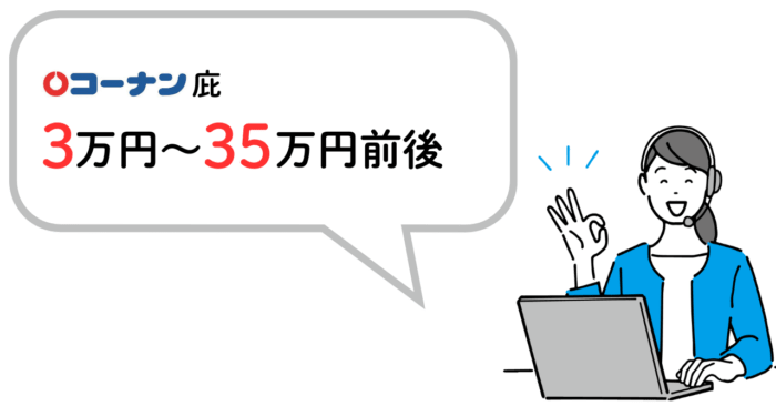 数分で申し込みが完了し、納まり案(雨樋/照明との干渉回避、金物補強、出幅・奥行の最適化)まで比較できれば、余計な追加費用を抑えつつ仕上がり品質も確保しやすくなります。コーナンの窓口→相見積りという二段構えも有効です。