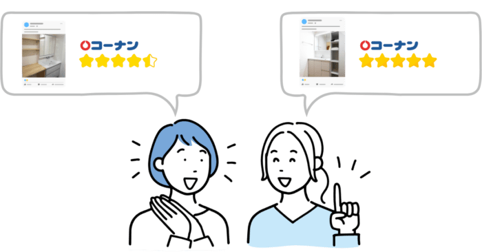 コーナンの洗面所リフォームは、見積の分かりやすさ・工期の短さ・内装同時施工のしやすさで高評価を集めています。一方で「店舗や時期によって価格差がある」「型番やオプションが多く迷う」といった声もあります。ここでは、実際にコーナンで洗面所リフォームを行った方のリアルな口コミをまとめました。