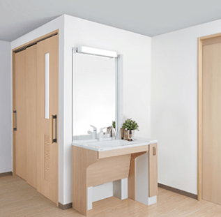 ![]() Lクラス ドレッシングラシス | フラグシップモデル/オーダーメイド感覚 | スゴピカ素材、タッチレス水栓、オープンタイプ、ツインラインLED、オーダー対応、すっきり家電収納 | 約29.3万円~(税抜26.6万円~) |