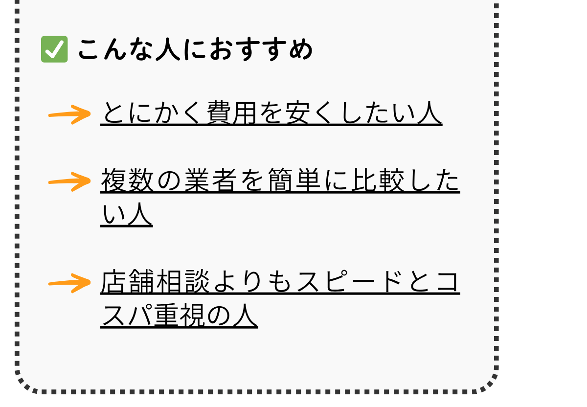 自力で納得のいく個人業者を探すには時間と労力がかかるため、効率よく優良な業者を見つけるには、一括見積もりサイトの活用がおすすめです。