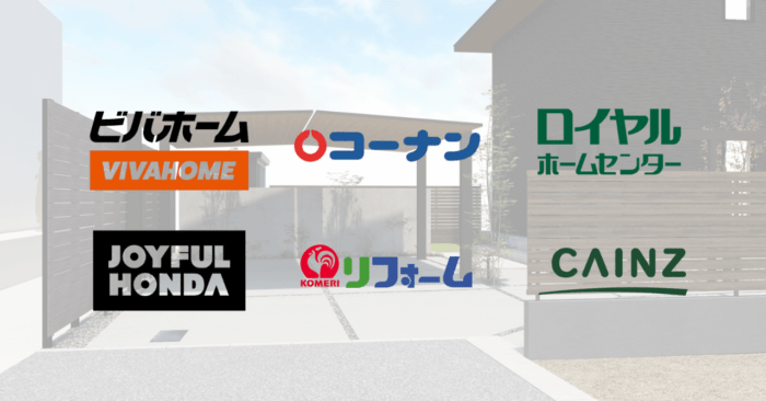 ・ロイヤルホームセンター…外構工事のメニューが豊富。店のオリジナル開発ブランド(iEMORE等)は日用品主体だが、外構はメーカー品+工事パックが中心。