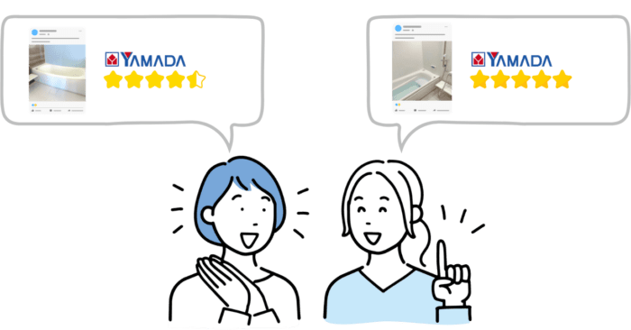 ヤマダ電機の浴槽交換は、家電量販の強みであるわかりやすい見積り・ポイント還元・ワンストップ対応が評価されています。一方で、下地補修や配管の追加が必要なケースで費用が上がるとの声も。ここでは実際にヤマダ電機で浴槽交換・浴室リフォームを行った方のリアルな口コミをまとめました(内容は傾向の要約です)。