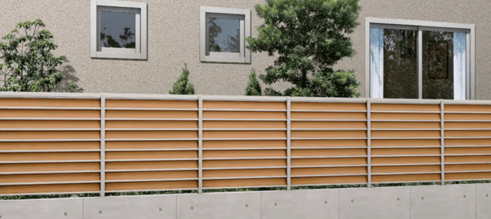 樹脂やスチール系フェンスは、ローコストで耐久性が高く、広範囲の敷地や集合住宅に多く採用されています。木調樹脂タイプはナチュラルな外観を演出できます。