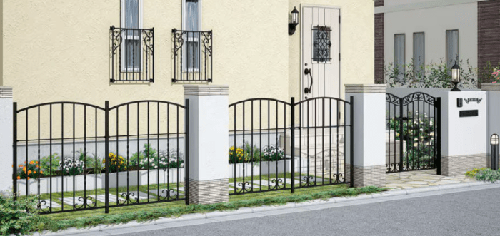 ・デザイン性重視なら「アーキキャストフェンス」が選ばれており、欧風住宅に映える外構を実現します。