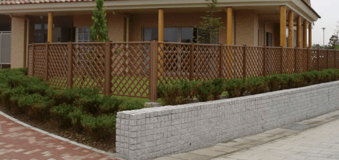 ![]() 木樹脂®フェンス | 自然木の風合いを再現した木調樹脂フェンス | 高さ0.6m~1.8m、デザイン多数 | 約5.8万円~(1型・W1,195×H800・本体1枚+柱1本+端部材のセット例) |