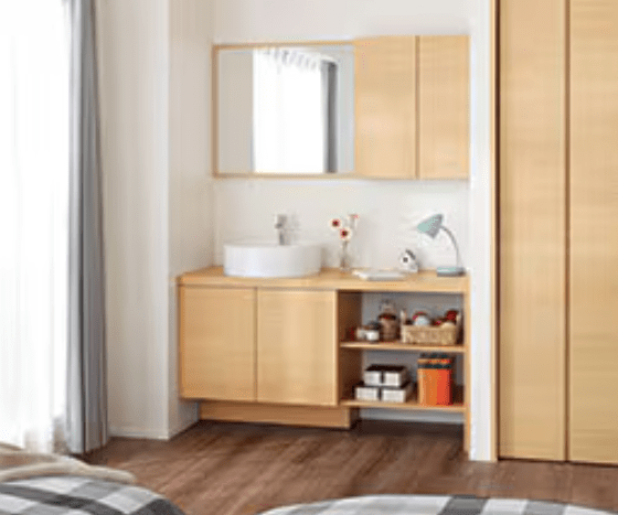収納拡張モデル(W900~1000) | 引き出し収納やワイドミラーで使いやすさを向上 | 22万~35万円程度 |