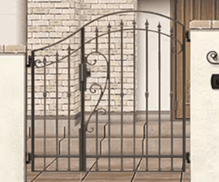 アルミ形材を用いた門扉は、軽量でメンテナンス性に優れており、幅広い住宅スタイルに合わせやすいのが特徴です。デザインやサイズのバリエーションも豊富で、コストパフォーマンスに優れています。