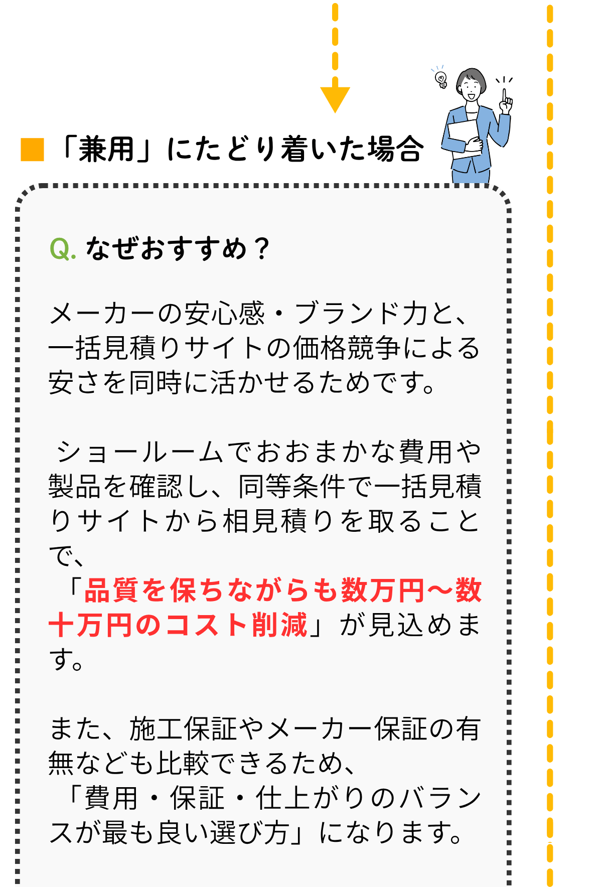 一括見積もりを使えば短時間で複数社の提案と価格・保証・申請対応を比較でき、「晴れもようwith」か「スーパーテラスGTⅡ」かの最適解も見つけやすくなります。