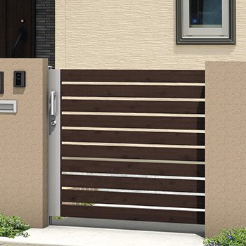 ![]() 木粉入り樹脂門扉 | 自然と調和したナチュラルテイスト | 木質感と耐久性を両立、メンテナンス性も高い | 約10万円~25万円 |