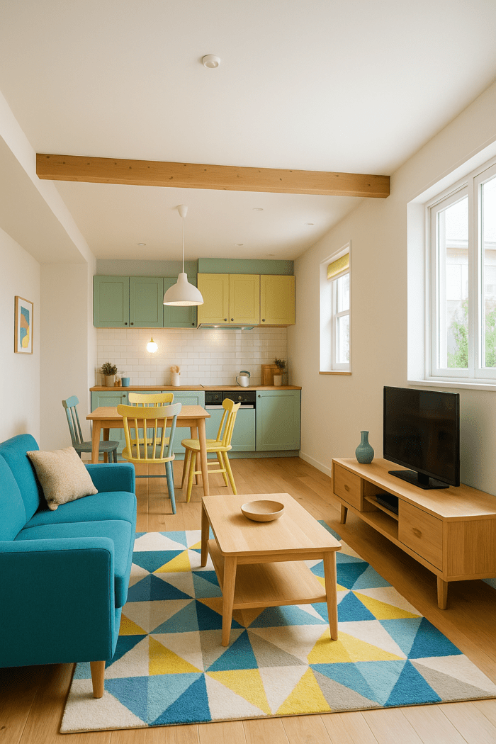 外観はシンプルながら、室内はカラフルで遊び心のあるデザインが多いのが特徴です。木材や布製品など自然素材を活用し、温もりと機能性を両立しています。