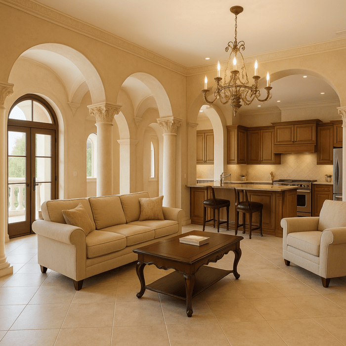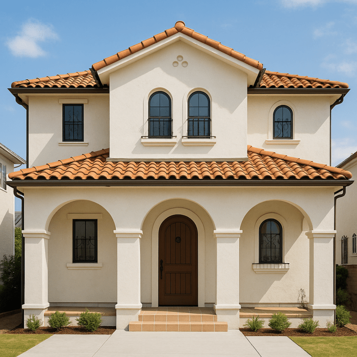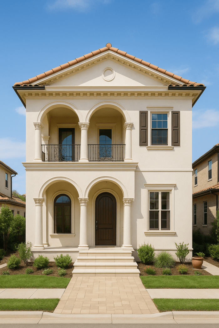 古代ローマの住宅をモチーフに、アーチや円形のデザインを多用します。装飾性が高く、柱やバルコニーを設けることで豪華さを演出するのが特徴です。