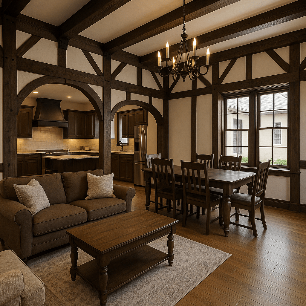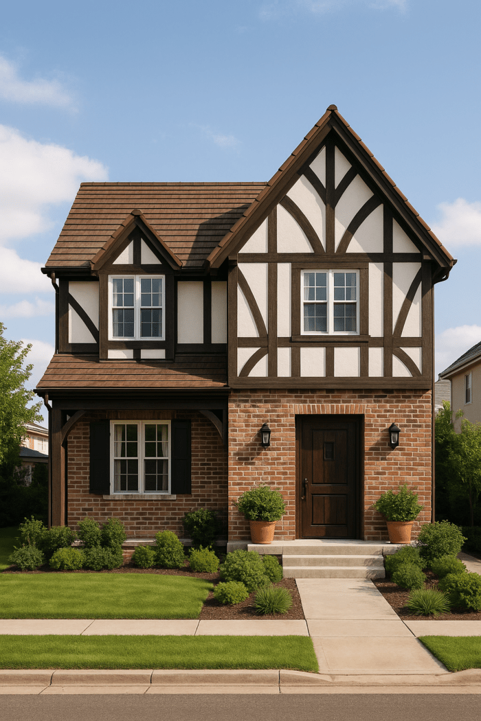 急勾配の三角屋根や、柱や梁を外壁に見せる「ハーフティンバー」が特徴。中世イギリスを思わせるデザインで、クラシックで格調高い印象を与えます。