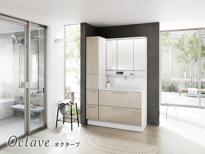 ![]() オクターブスリム | 省スペース向けスリムタイプ | 片寄せボウルプラン、タッチレスお掃除ラクラク水栓、タッチレスワイドLED、きれい除菌水、ちょい置きカウンター、ひろびろボウル、スウィング三面鏡、ハイバックガード | 約33万円〜(税込) |