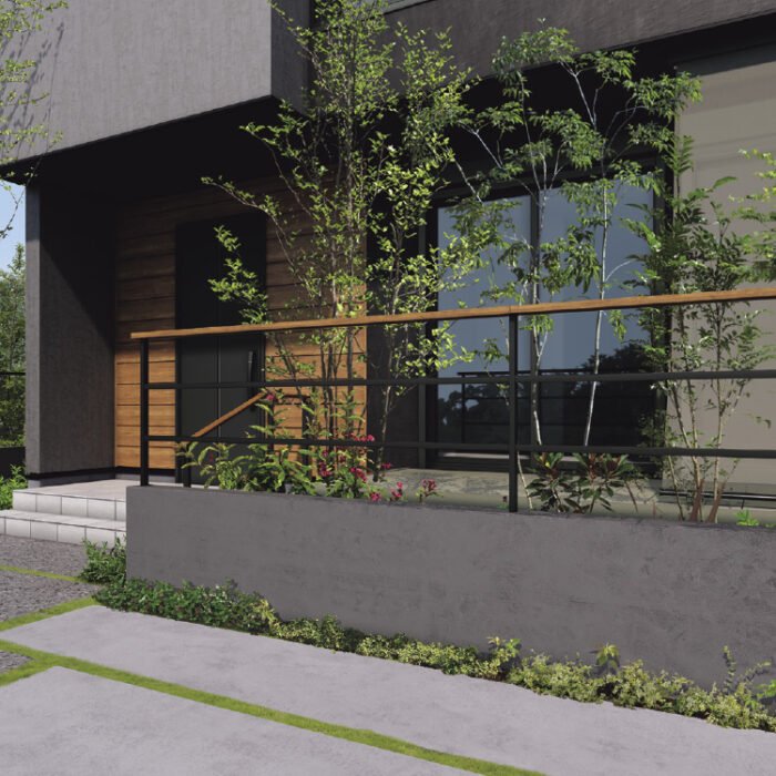 木調・樹脂デザインの「ルシアス」や「リウッド」はナチュラル住宅に好相性。シンプル意匠の「シンプレオ」はモダン住宅にフィット。鋳物の「シャローネ」は高級感・重厚感を演出します。